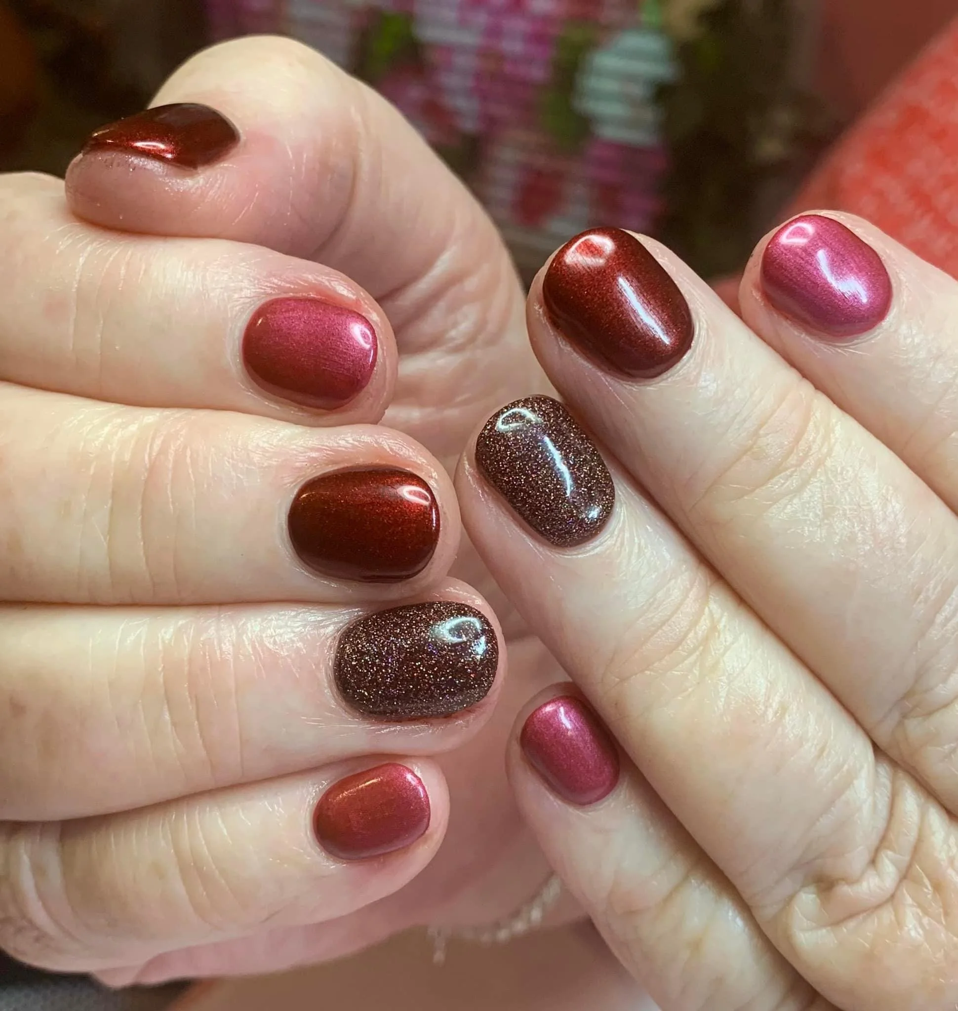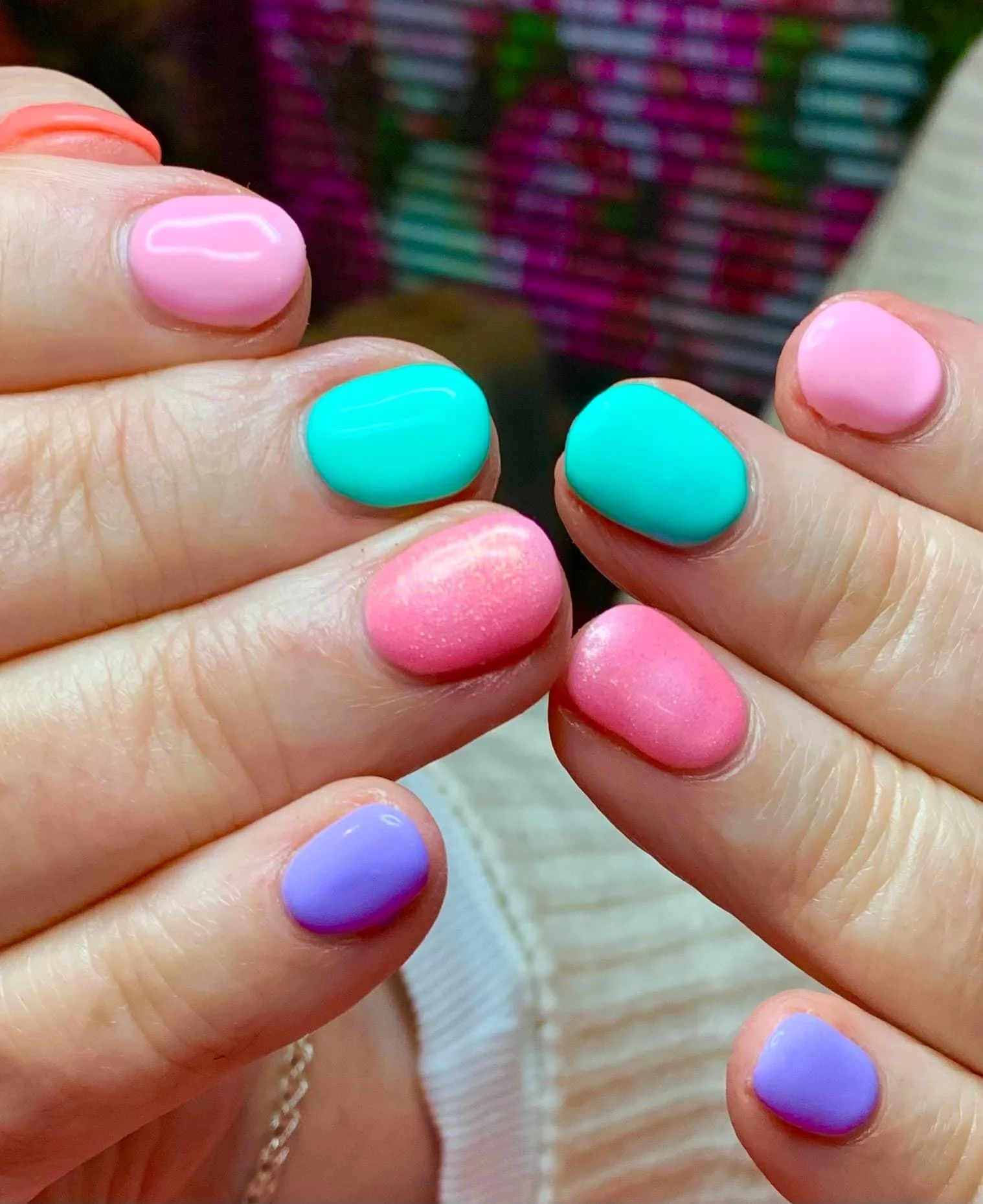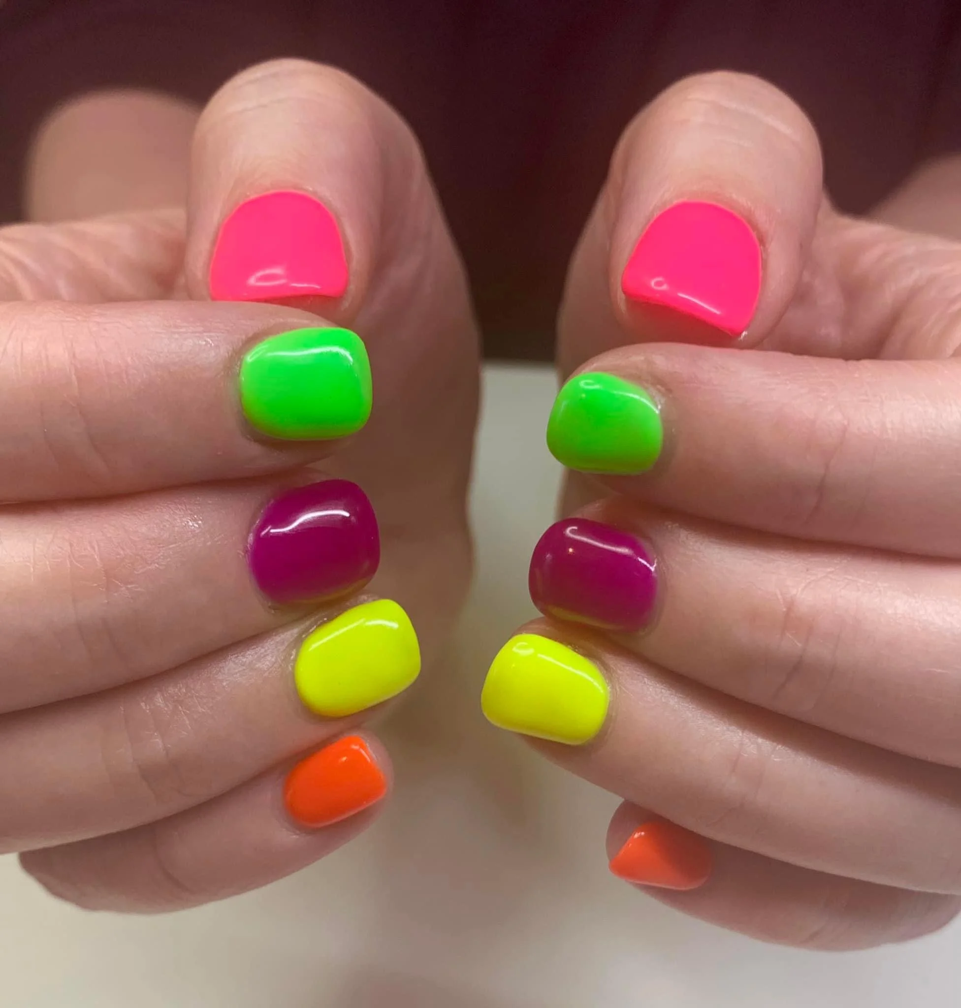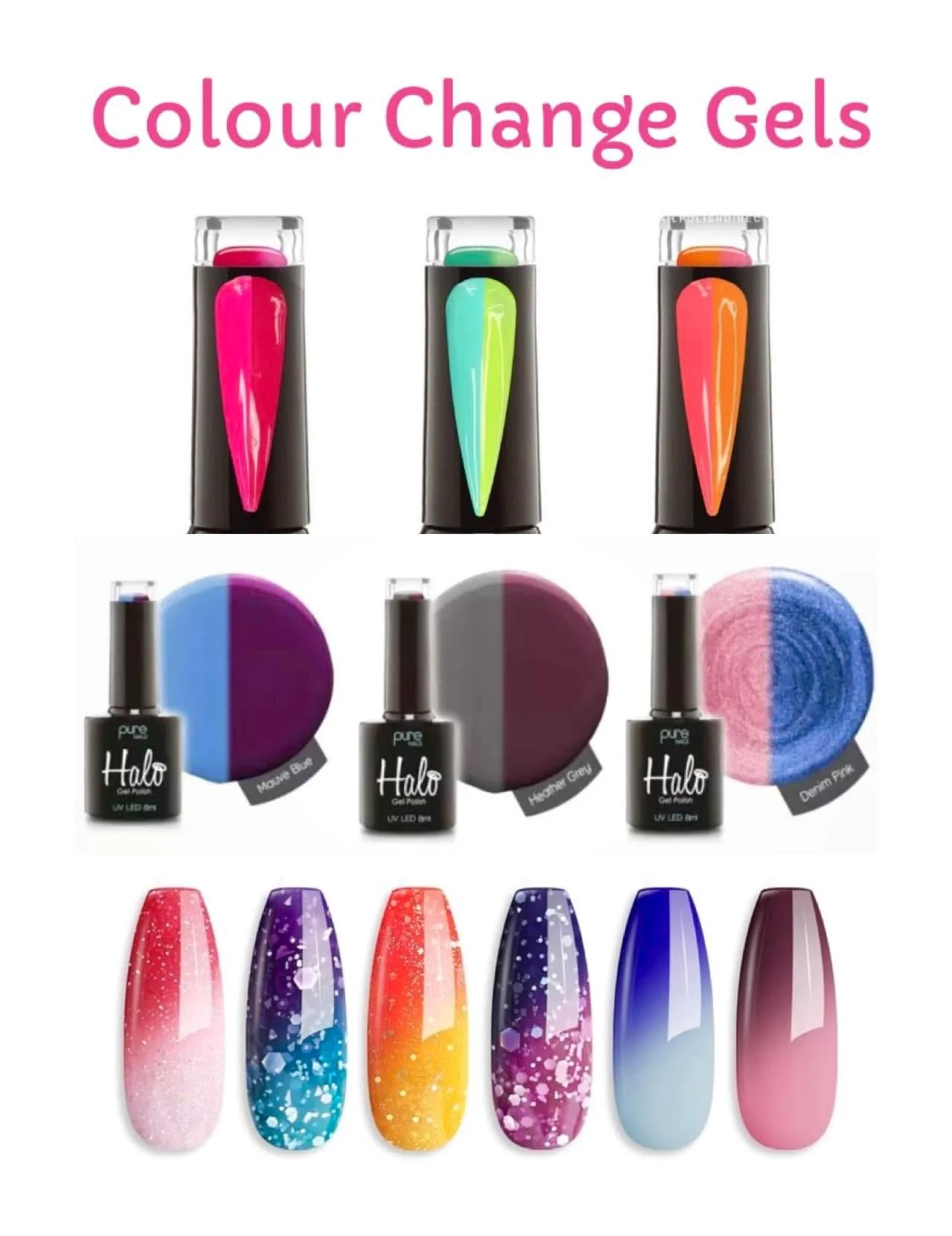 Gels are a thicker gel that is applied to the natural nail that can be built up to create a hardwearing, stronger, shiny finish, cured under a led lamp, dry’s instantly lasting up to 2/3 weeks