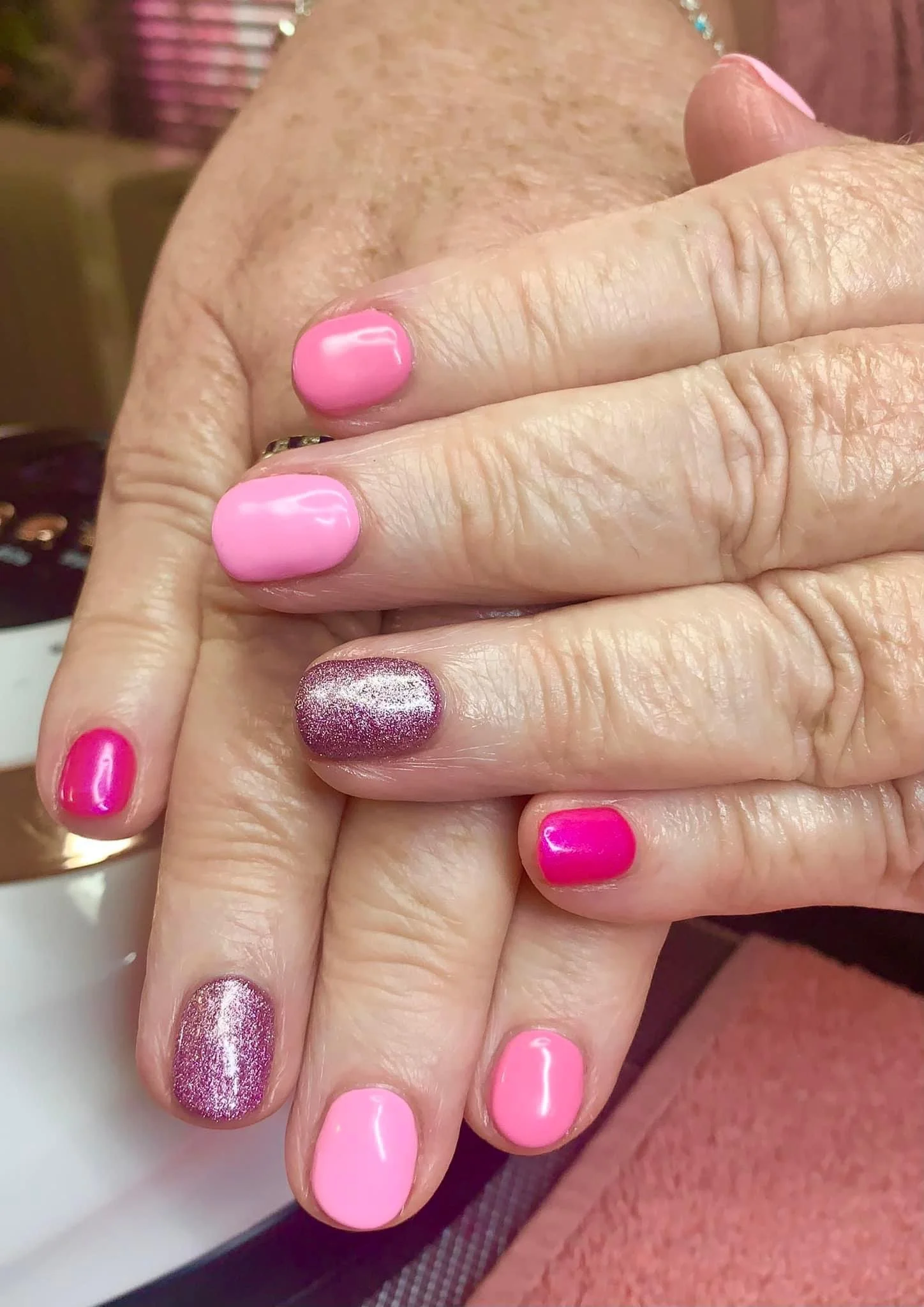 shape nails, tidy up cuticles, apply gel colour, finish of with cuticle oil