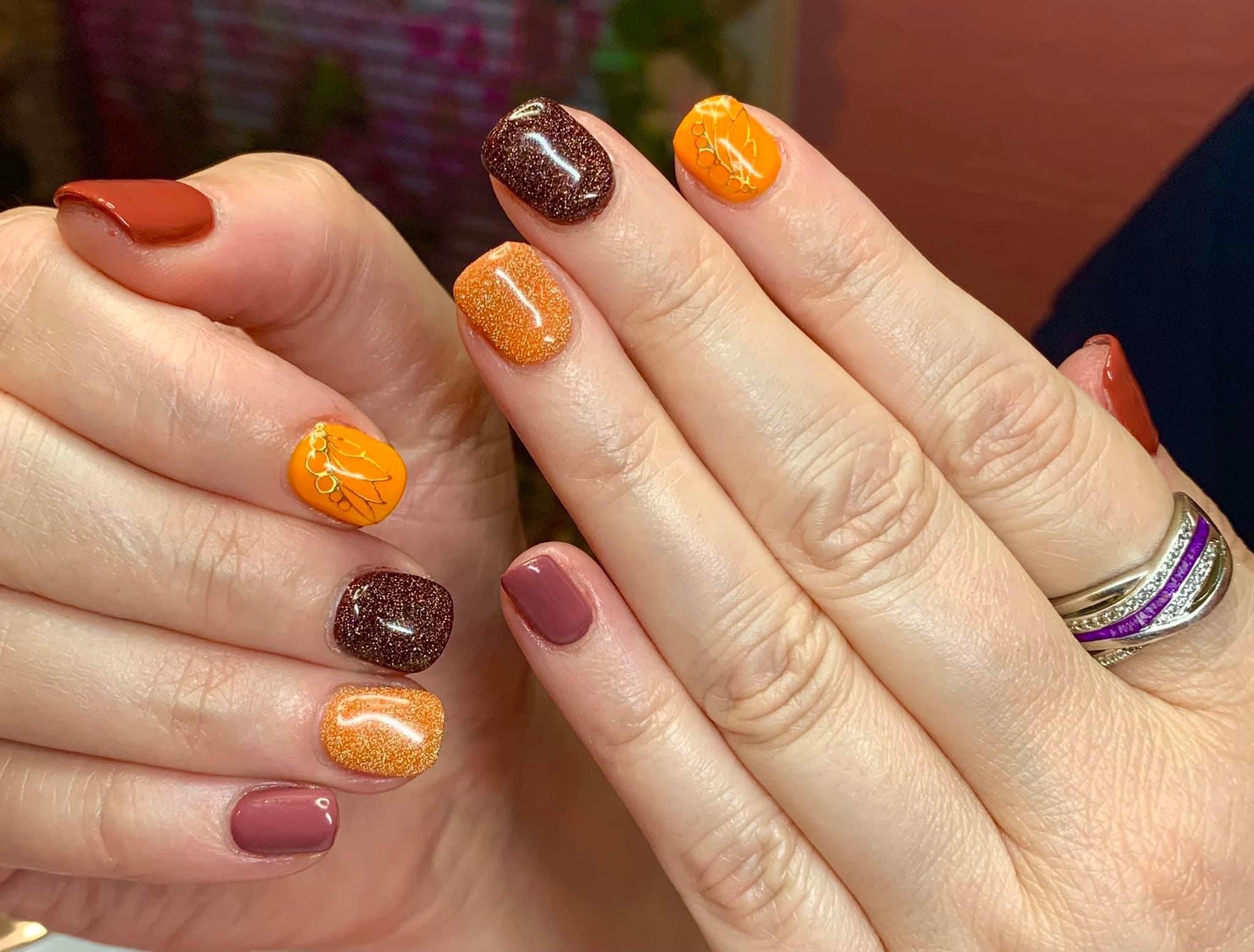 relax while having your nails shaped, apply a mandarin & black pepper exfoliating scrub, remove with warm mittens, tidy up cuticles, enjoy a relaxing hand/arm massage, apply gel colour, finish of with cuticle oil